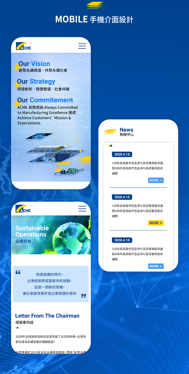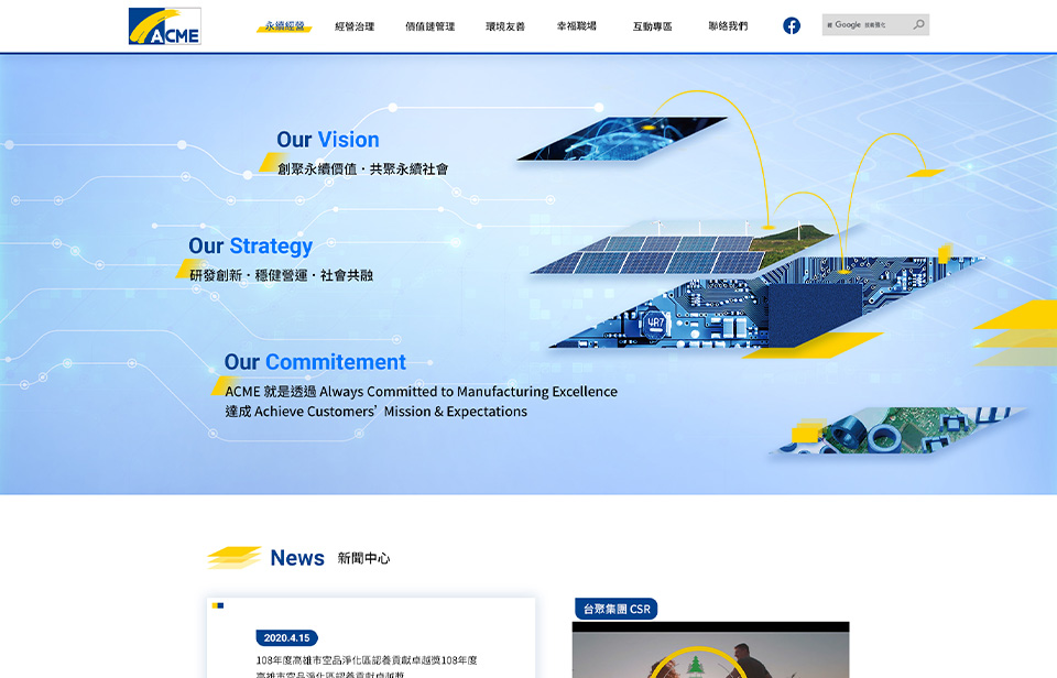 越峯電子作為台聚集團的重要成員,秉持「創聚永續價值、共聚永續社會」的願景,致力於透過 研發創新、穩健經營、社會共融 三大核心策略,推動企業與社會的永續發展。源做設計本次 ESG 網站設計將重點放在清晰呈現企業的永續戰略與績效,並透過數據視覺化與互動點擊內容提升用戶體驗,使 ESG 資訊不僅透明易讀,更能讓訪客深刻感受越峯電子在永續發展上的決心與實踐。